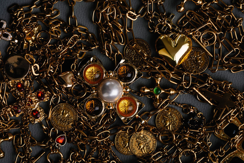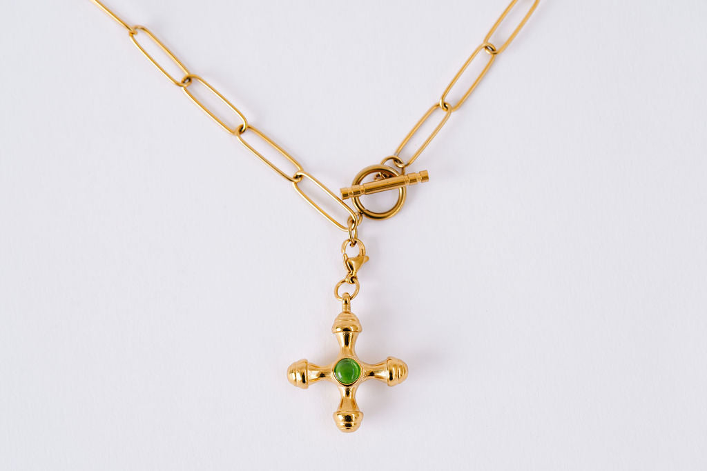 Medium paperclip chain, orthodox cross with green stone