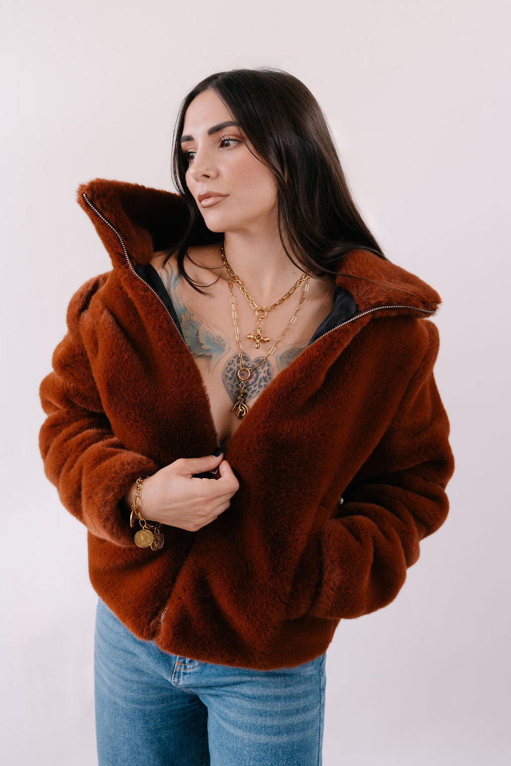Medium size chunky chain, OT clasp and orthodox cross featuring a tigers eye stone